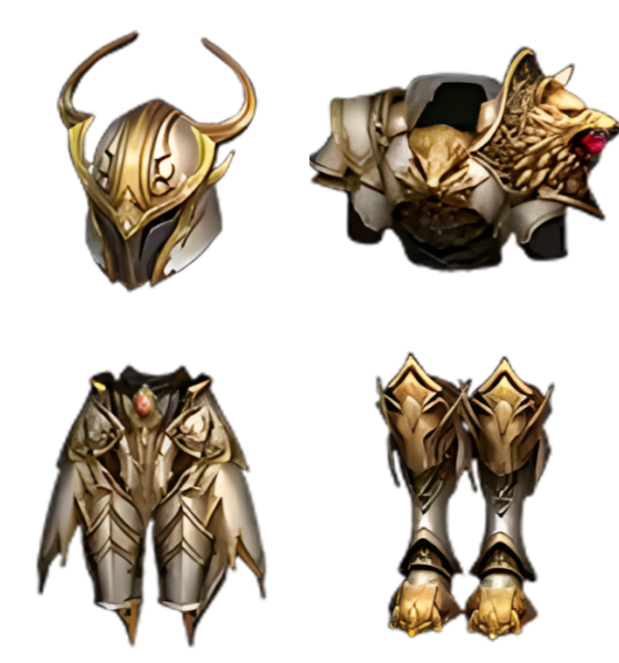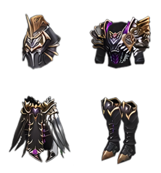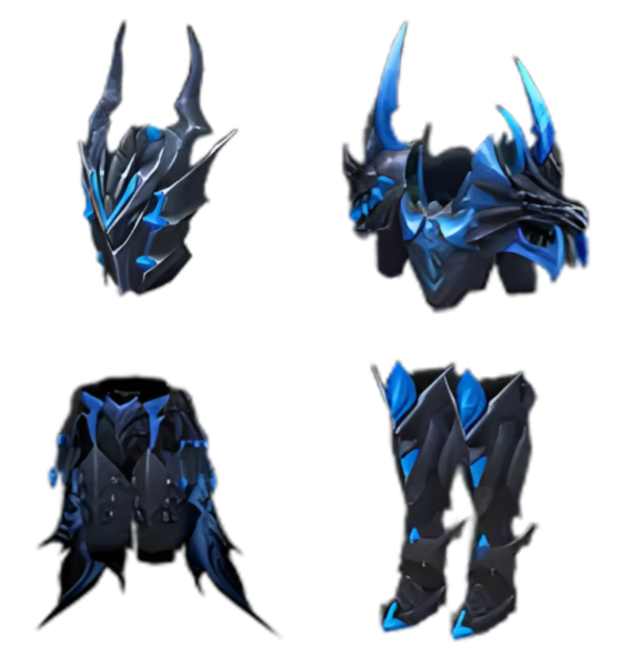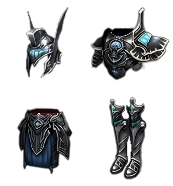 O Dark Knight pode usar a maioria dos tipos de armas do continente, incluindo espadas, machados e lanças, e pode vestir uma variedade de armaduras, desde armaduras leves e práticas até armaduras pesadas que cobrem todo o corpo.