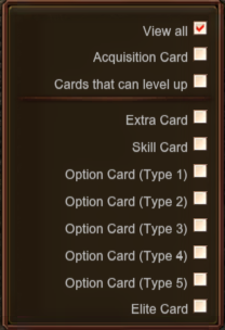 * Verificar as cartas de habilidade obtidas e obtíveis para cada classe, bem como as cartas equipadas nos núcleos.