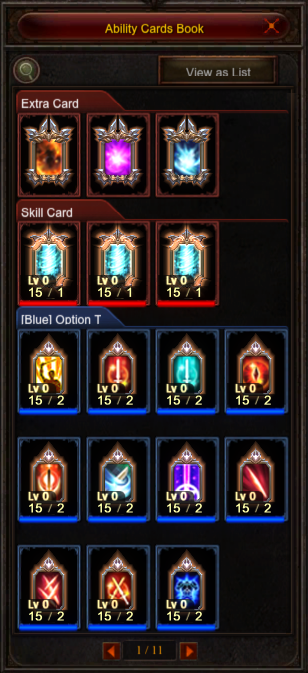 Ability Cards Book Filtro Ability Level UP Ability Reduce