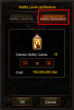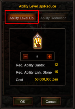 * A quantidade de Ability Cards e Ability Enhancement Stone necessárias para o aprimoramento de nível pode ser verificada na interface do usuário (UI).