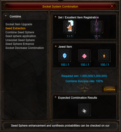 x01 Jewel of Harmony, x01 Jewel of Chaos, x01 Jewel of Creation x01 Excellent Item +4 or above, x01 Set Item +4 or above 1,000,000