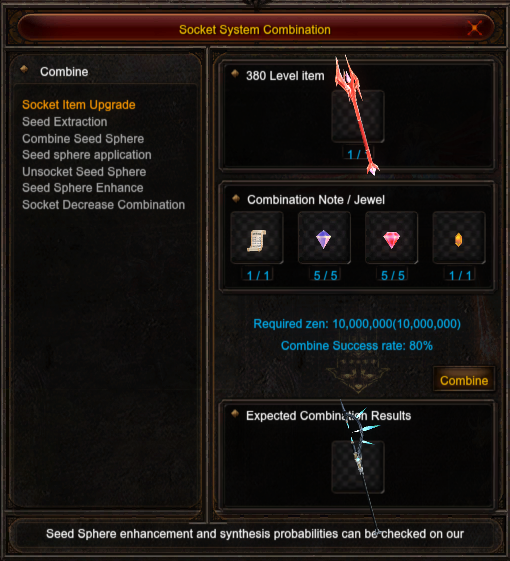 Para evoluir um item Socket de nível 380 para 400 você precisará seguir o seguinte passo a passo.