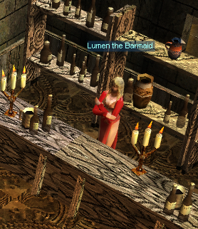 [edit]Lumen the Barmaid é uma NPC localizada na movimentada cidade de Lorencia, sempre pronta para ajudar aventureiros com itens essenciais para sua jornada. Trabalhando atrás do balcão de uma aconchegante taverna, Lumen se tornou uma figura conhecida entre os jogadores por sua utilidade e fácil acesso logo nos primeiros passos no continente de MU.