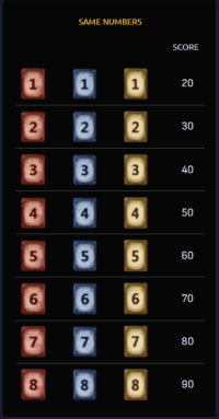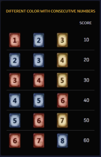 - 4. O objetivo é formar combinações de valores e cores. Cada combinação concederá um score diferente.
