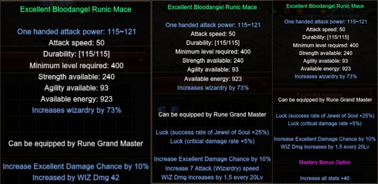 - Pode alterar os adicionais excellents da arma exceto a taxa de dano excellent 10%.
