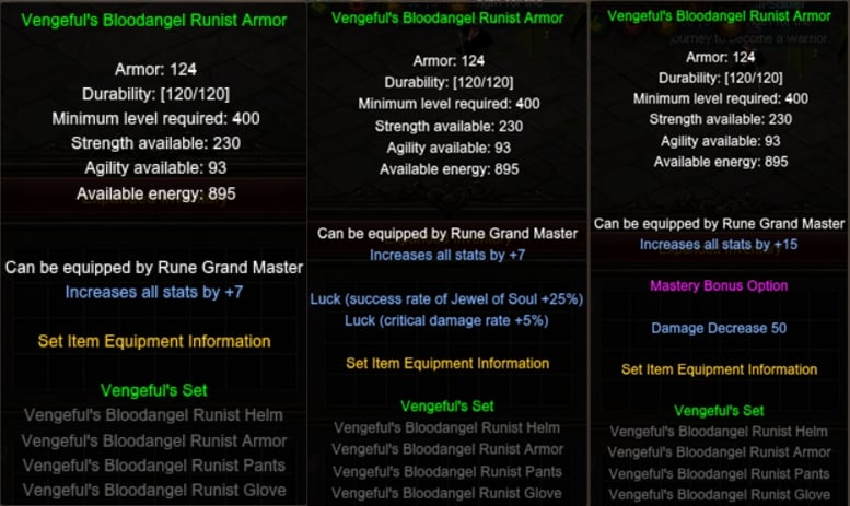 Em sets completos (Luck + 15 status), a Mysterious Stone pode adicionar bônus de redução de dano.