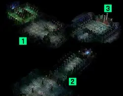 - Cada zona é dividida em um ponto de início, uma zona de batalha e uma zona de teleporte.